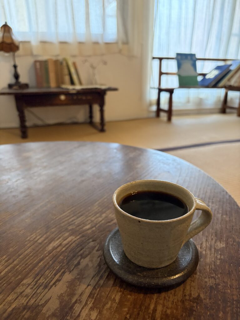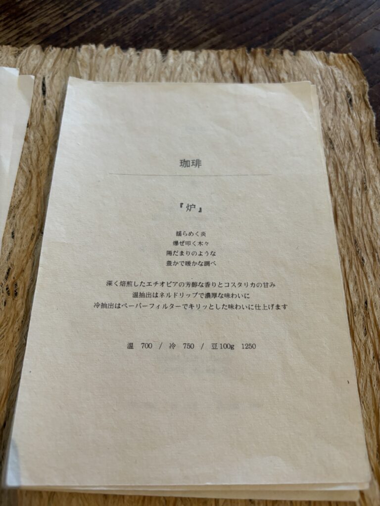 まずはコーヒーの到着!エチオピアとコスタリカの中深ブレンドらしい。ゆっくりお召し上がりくださいと。とりあえず一口
