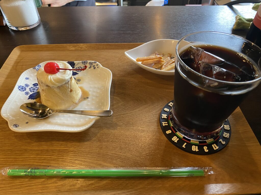 注文したのはアイス珈琲(850)とカスカラプリン(500)。結果的に1050円になりました!詳しくは最後に少し書きます