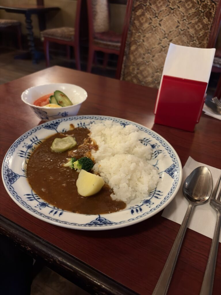 注文したのはカレーセット。ミニサラダとコーヒーor紅茶が付いてくる。お得~