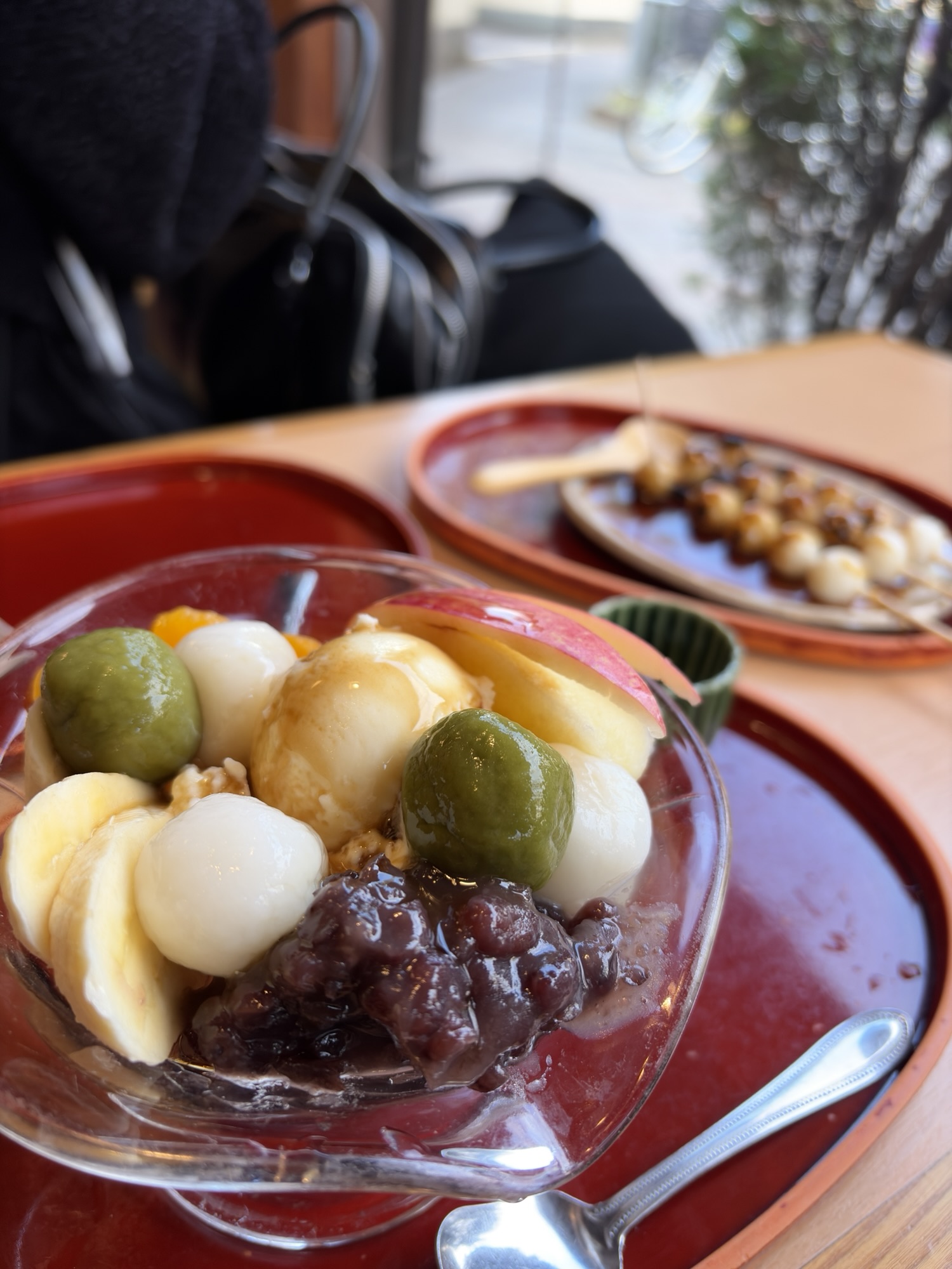 白玉クリームあんみつ(1000)とみたらし3本付き(500)