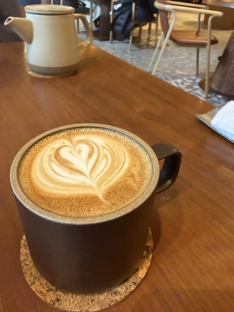 最後のドリンクはやっぱり、コーヒーメニューからカフェラテを選択。Overview Coffeeという所の豆を使っているそうです。環境に配慮されたコーヒー豆とのこと